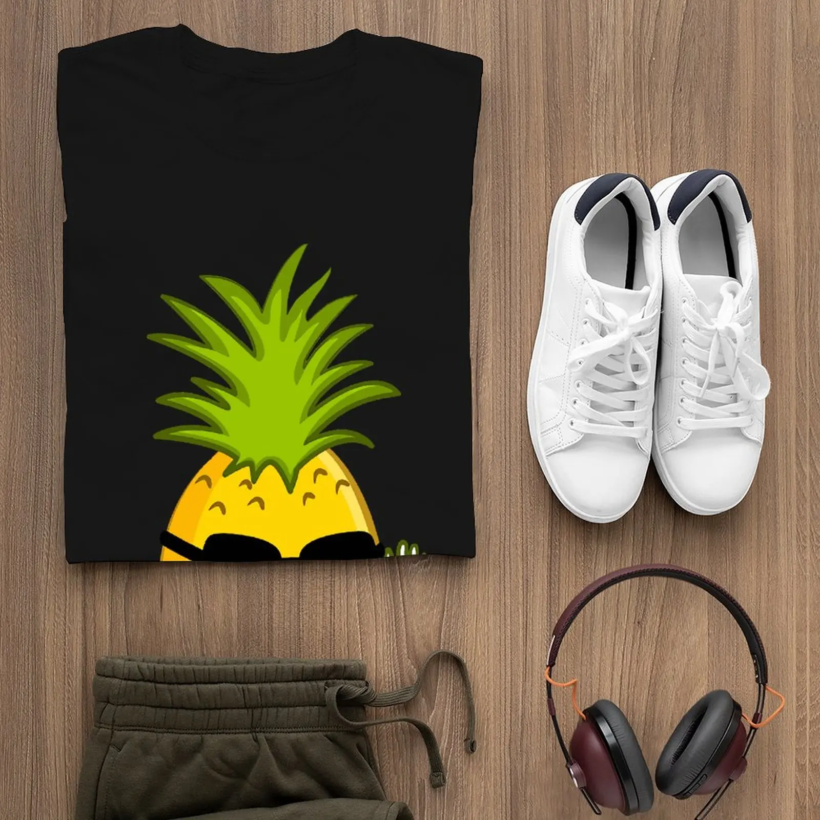 Футболка мужская с принтом ананаса, милая хлопковая рубашка с коротким рукавом, летняя блузка
