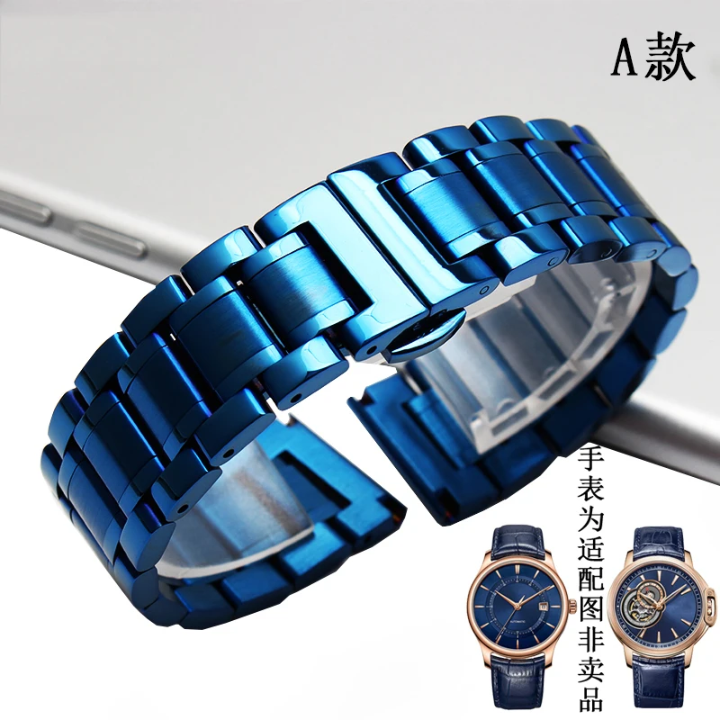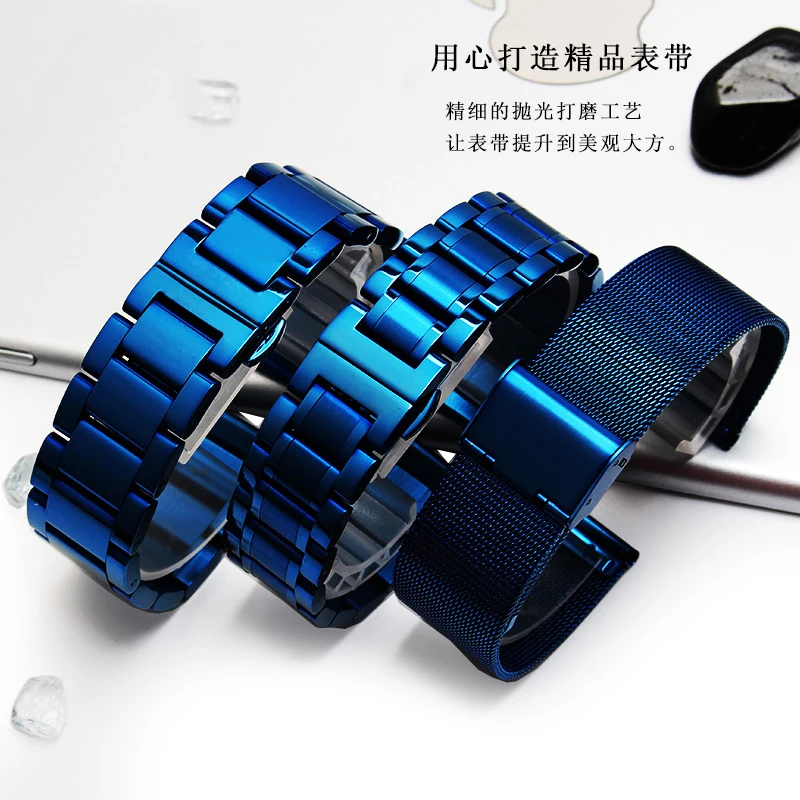 Ремешок из нержавеющей стали для наручных часов, синий металлический браслет с прямым концом для мужчин и женщин, 18 мм 20 мм 22 мм
