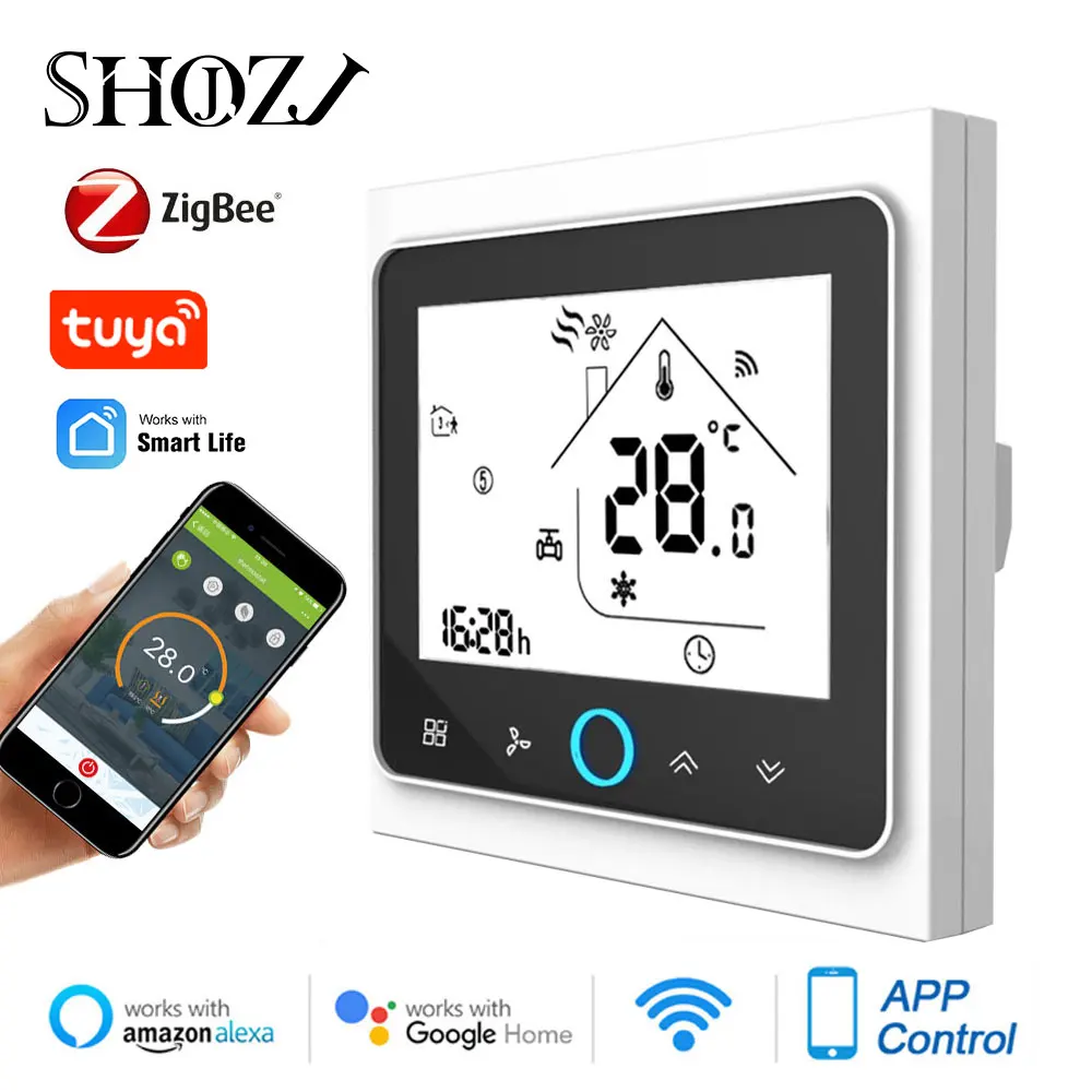 Умный термостат Zigbee, 2p/4p, центральный кондиционер, охлаждение/система отопления, контроллер комнатной температуры для катушки вентилятора, блок FCU