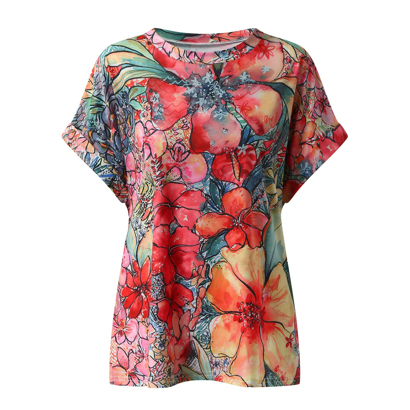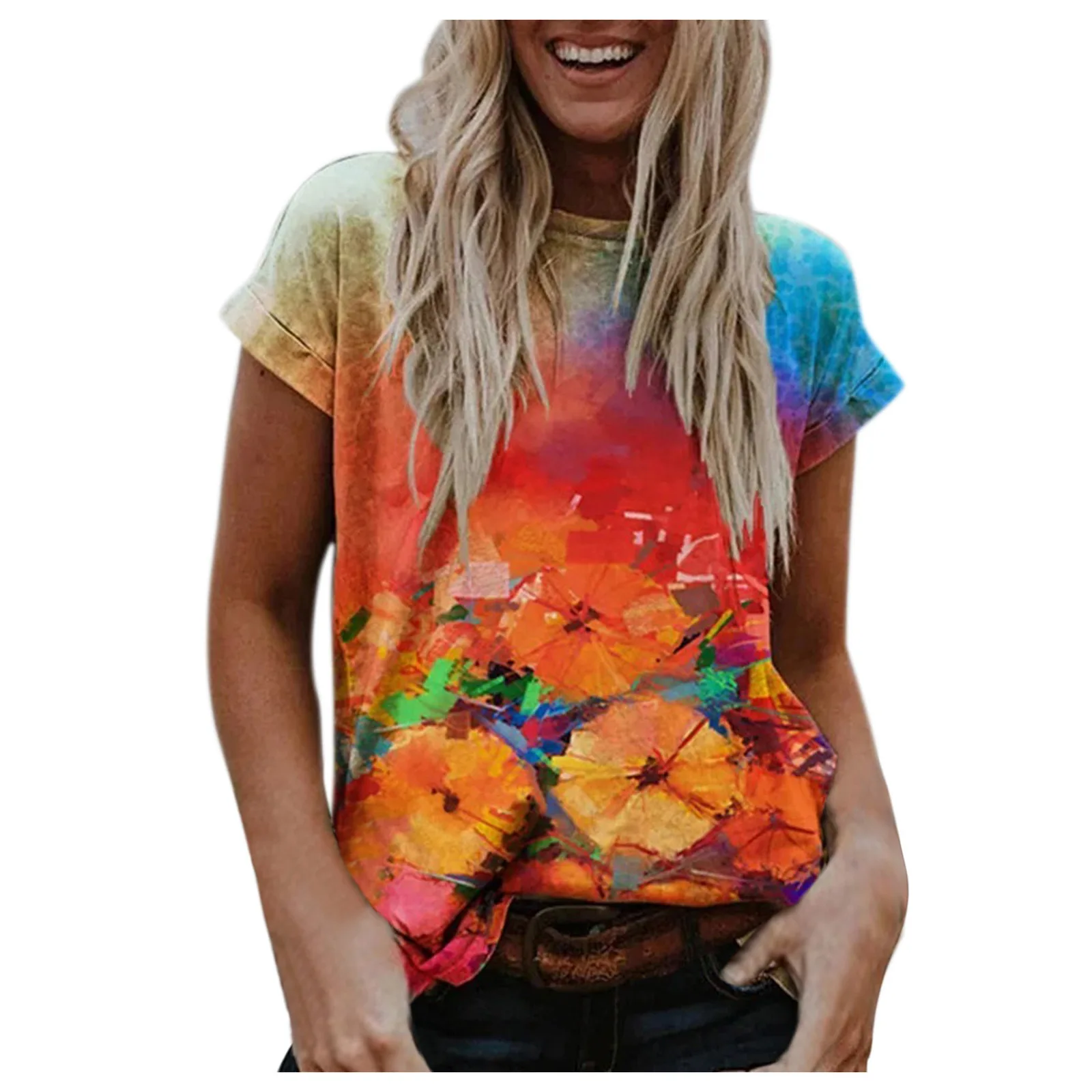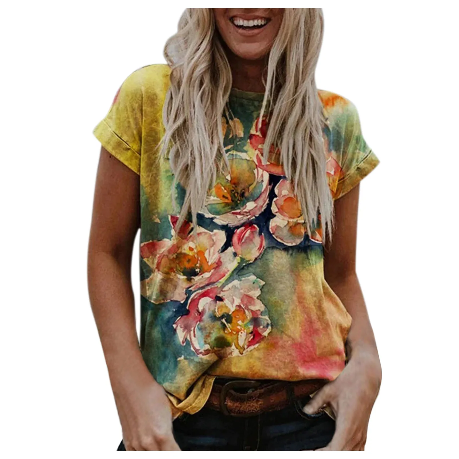 Новинка 2021, модные летние пуловеры, женская футболка с 3D цветочным принтом, женская футболка с коротким рукавом, базовые футболки, женские футболки