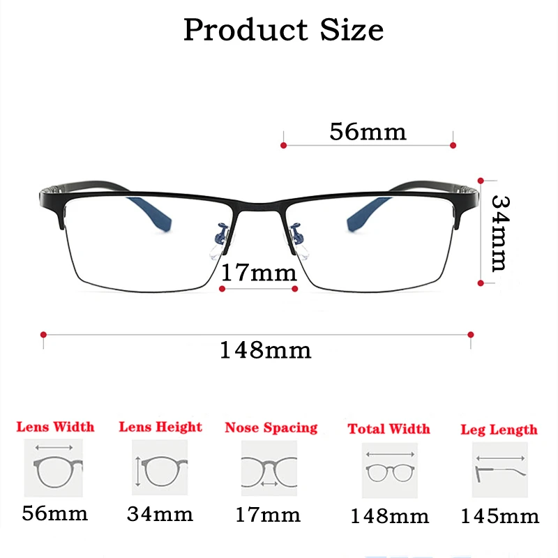 Мужские очки с полуободковой оправой, ультралегкие очки из титана в деловом стиле, большая оправа для очков по рецепту при близорукости, P9806