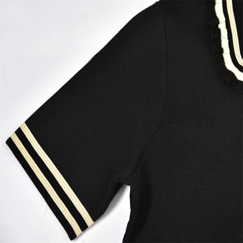 Женское летнее платье с отложным воротником, коротким рукавом, трикотажное платье А-силуэта, в полоску, элегантная мини-брошь в стиле High Street, потрясающая мода S