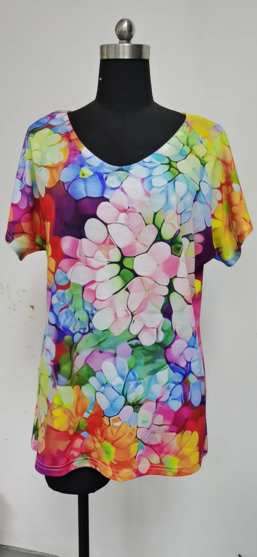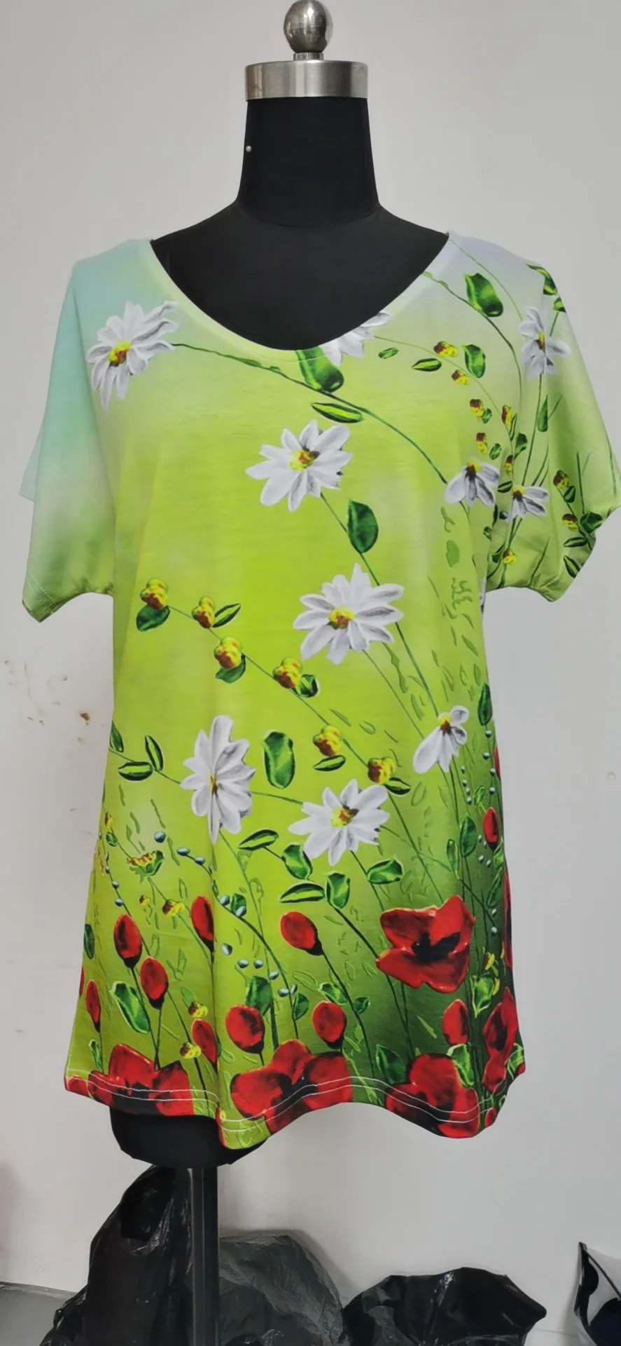 Женская футболка с коротким рукавом и цветочным принтом, размеры до...