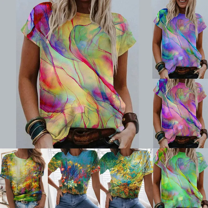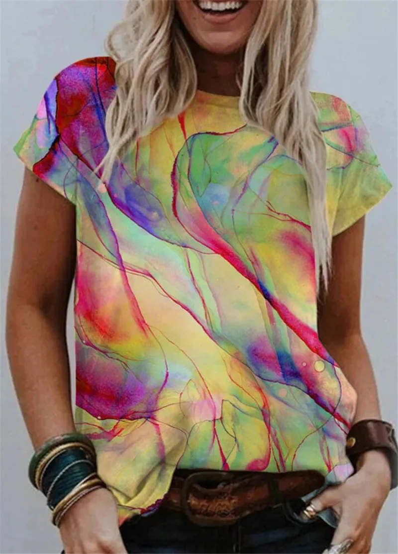 Женская футболка с коротким рукавом и круглым вырезом, с градиентным 3D принтом
