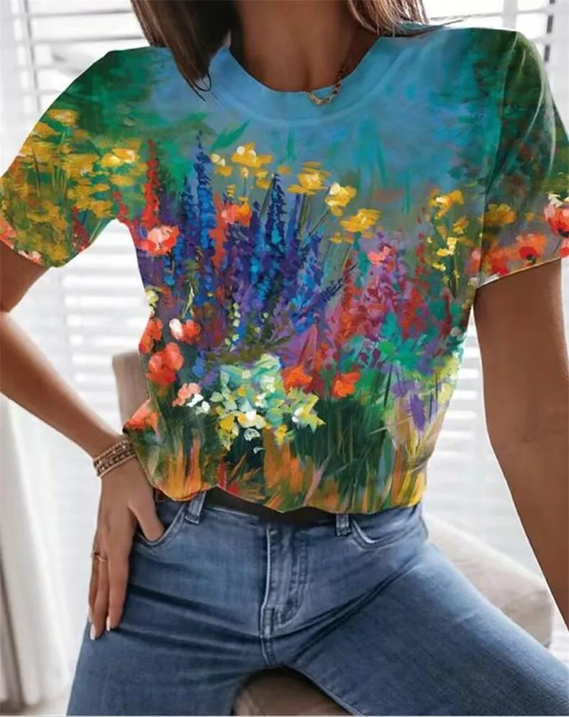 Женская футболка с 3D принтом растений, модная футболка с круглым в...
