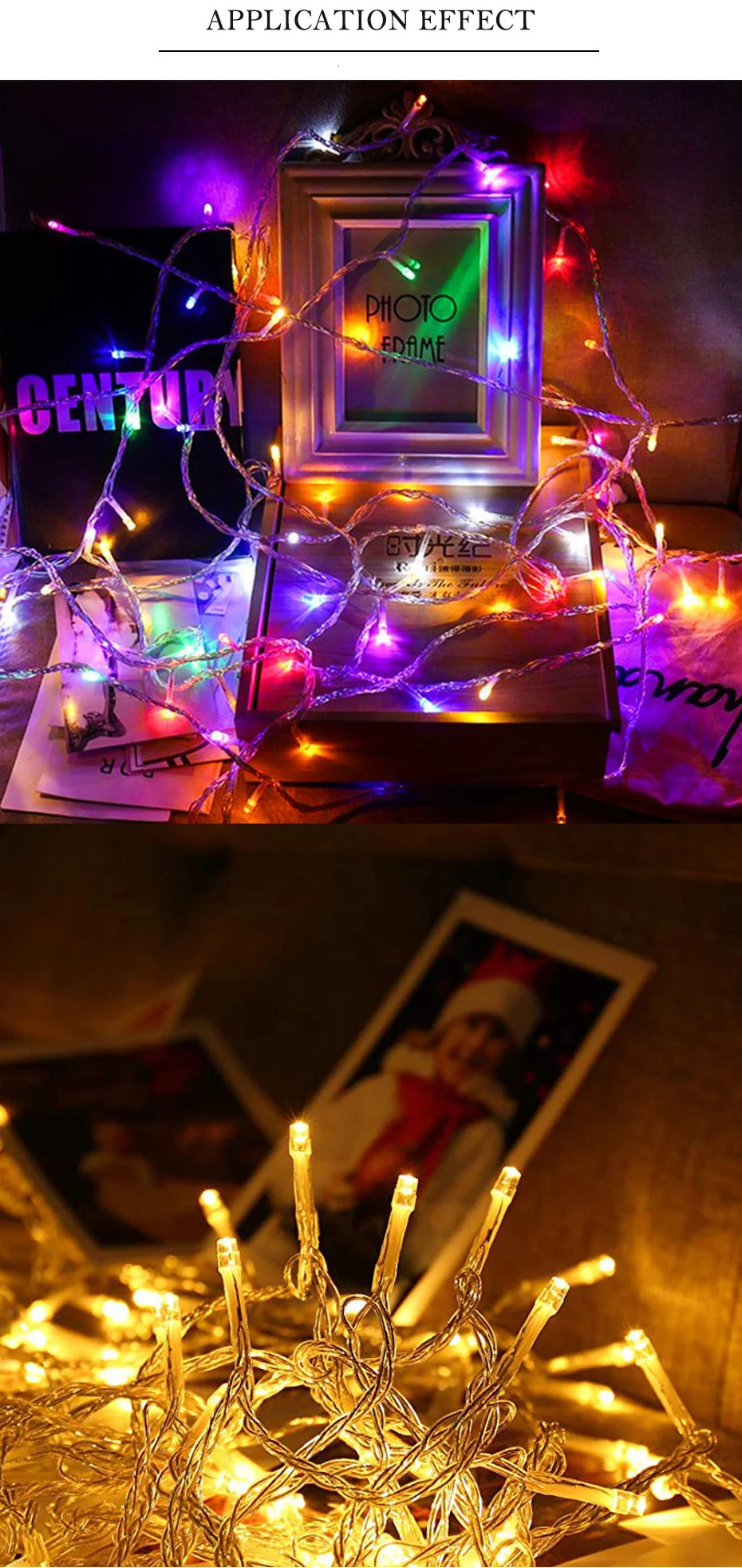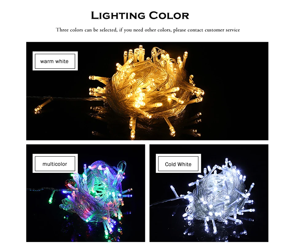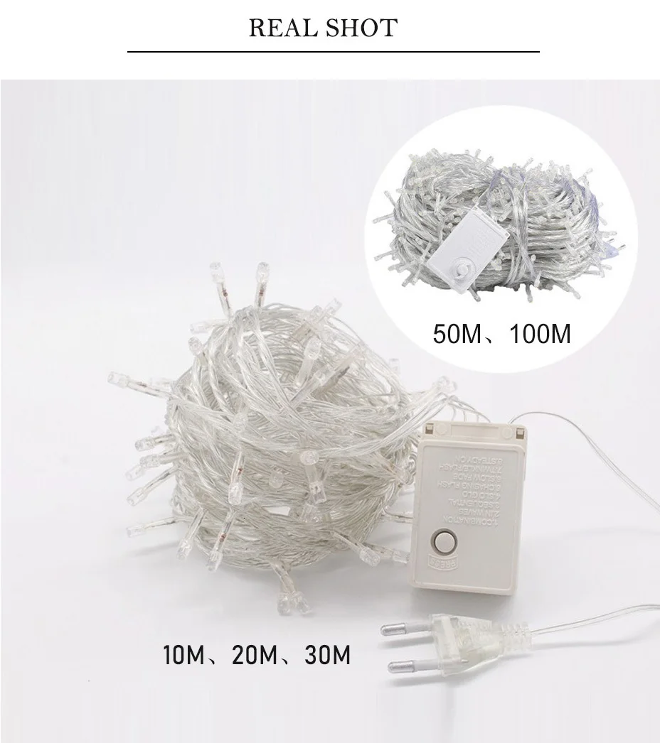 Рождественские украшения 220 в 10 м 20 м 30 м 50 м 100 м 8 режимов для свадебной вечеринки праздник светодиодная гирлянда сказочные огни Параметры продукта: Товар: светодиодный светильник Длина шнура: 10 м/20 м/30 м/50 м/100 м Всего светодиодные лампы: 100 светодиодов/200 светодиодов/300 светодиодов/400 светодиодов/800 светодиодов Масса: штепсельная вилка европейского стандарта Изготовлен из высококачественного материала, гибкого и удобного в хранении, струнный светильник обладает высокой яркостью, низким излучением и не загрязняет окружающую среду Напряжение: 220 В Материал: ПК + светодиодный чип Провод: медный провод + PVP провод
