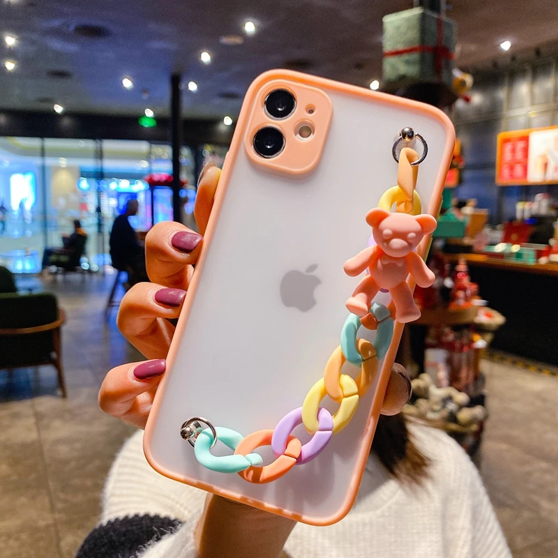 ХарактеристикиCute 3D Cartoons Candy Bear Wrist Chain Strap Soft Phone Case