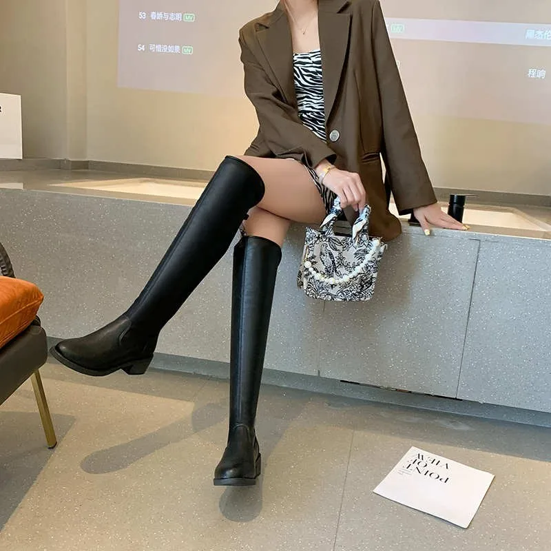 Сапоги до колена из искусственной кожи на толстой подошве, женские ...
