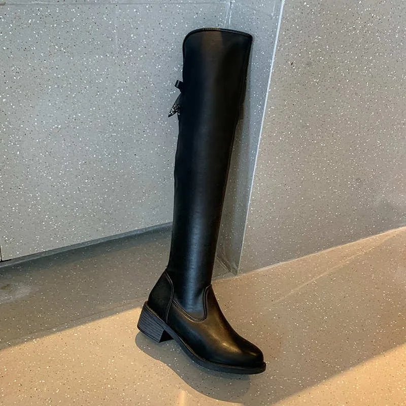 Женские сапоги до бедра, зимние черные сапоги выше колена на высоко...