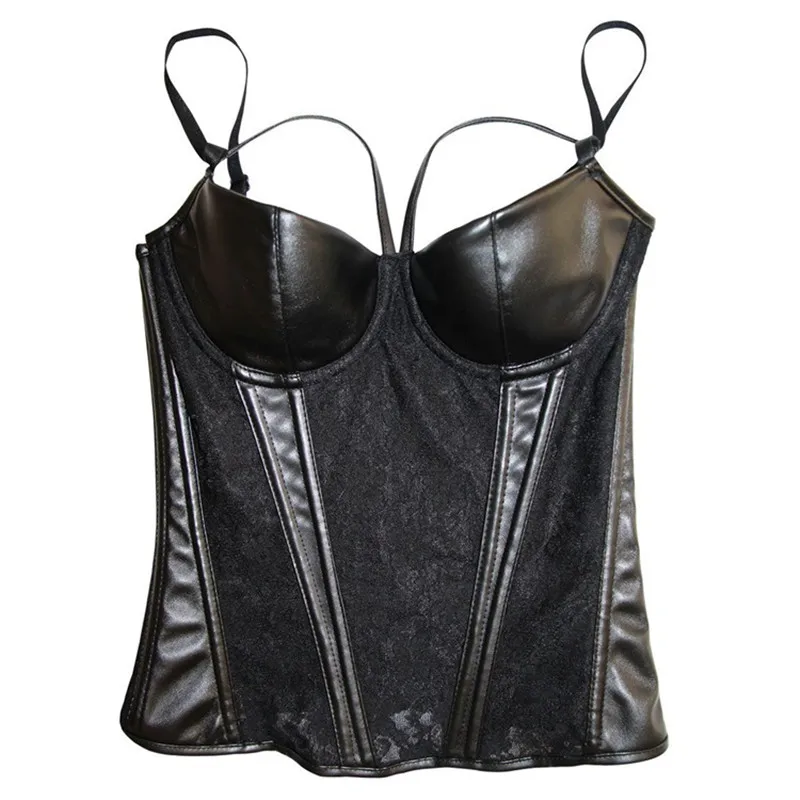 Женский корсет, платье, сексуальное кружевное бюстье, женский черный корсет пуш-ап, готический корсет из искусственной кожи, эротическое нижнее белье