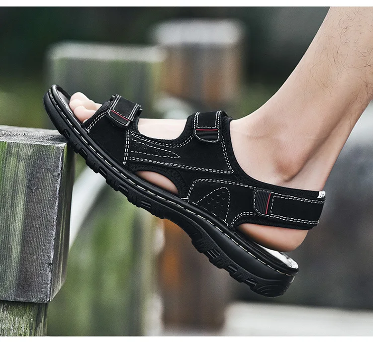Новинка 2022, мужские пляжные сандалии, кожаные сандалии больших ра...