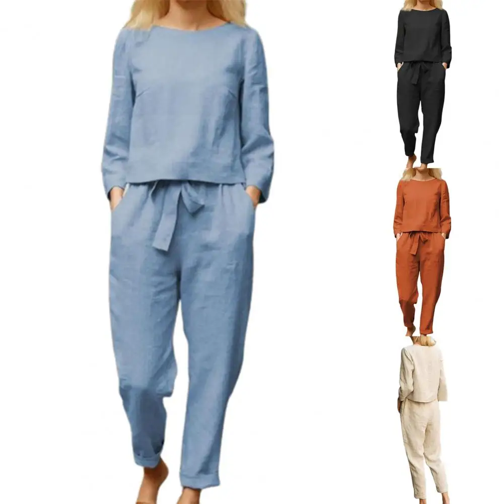 2 шт.компл. Однотонный женский брючный костюм, повседневный Топ с длинным рукавом, пуловеры, брюки со шнуровкой, комплект из двух предметов, женские спортивные костюмы