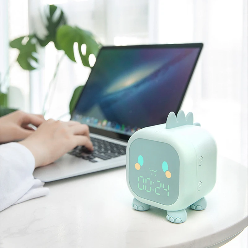 Детский будильник с ночсветильник и таймером повтора сна, детский тренер сна, будильник, милый динозавр