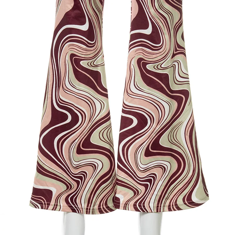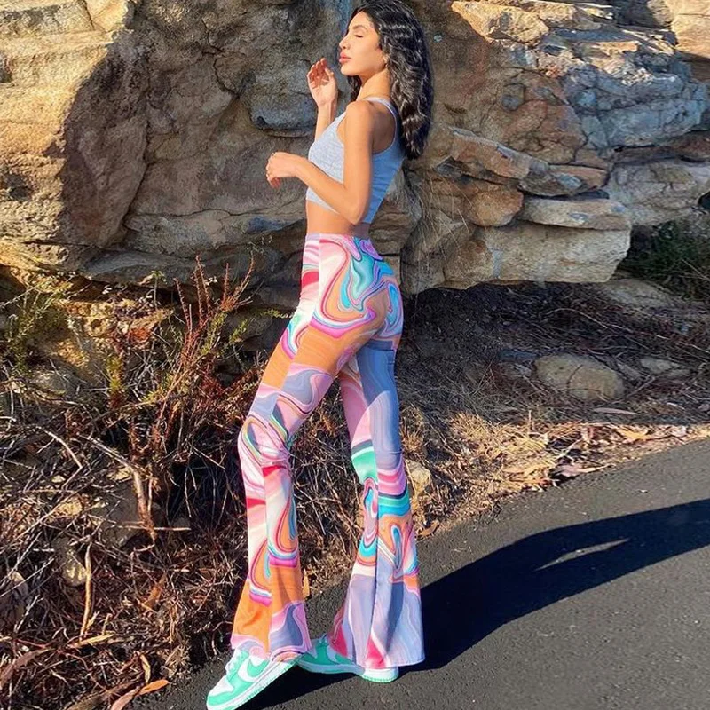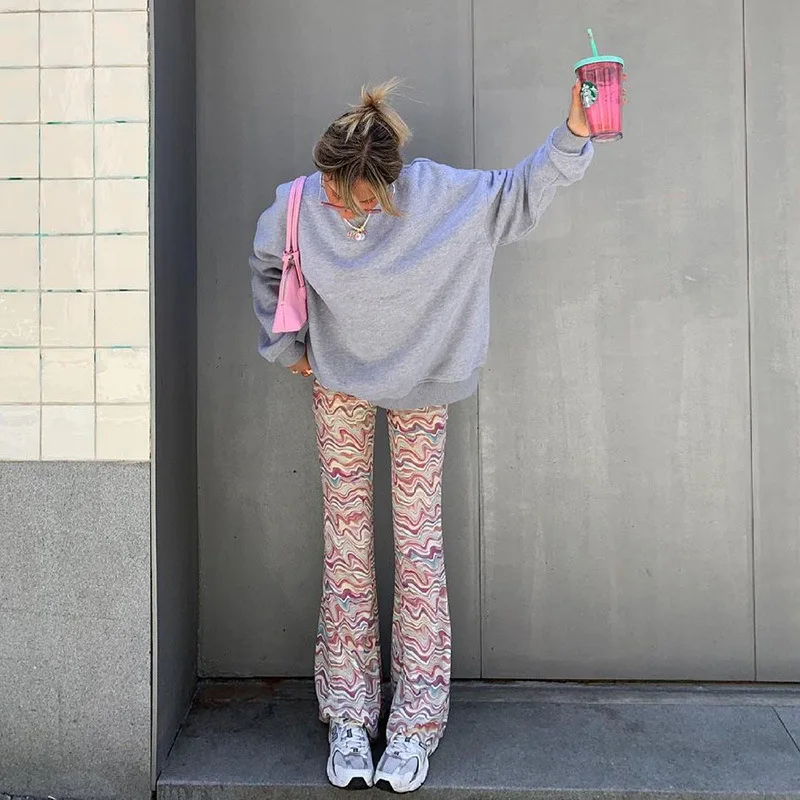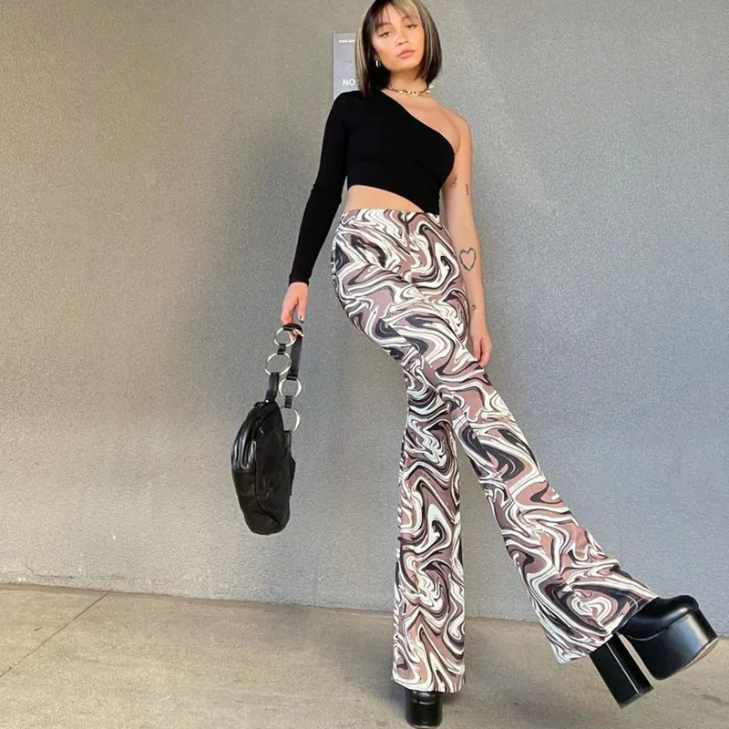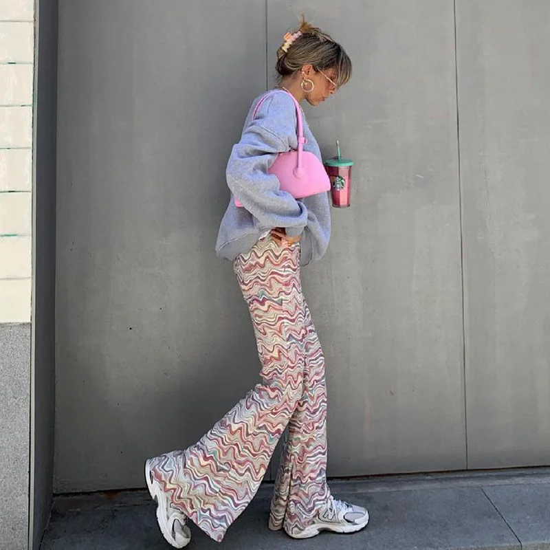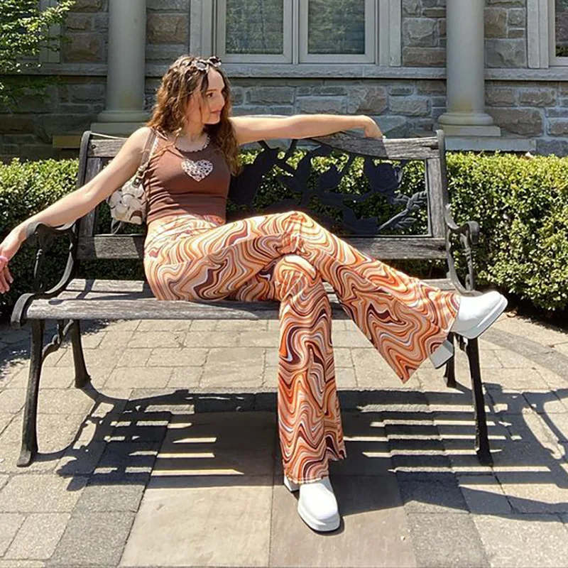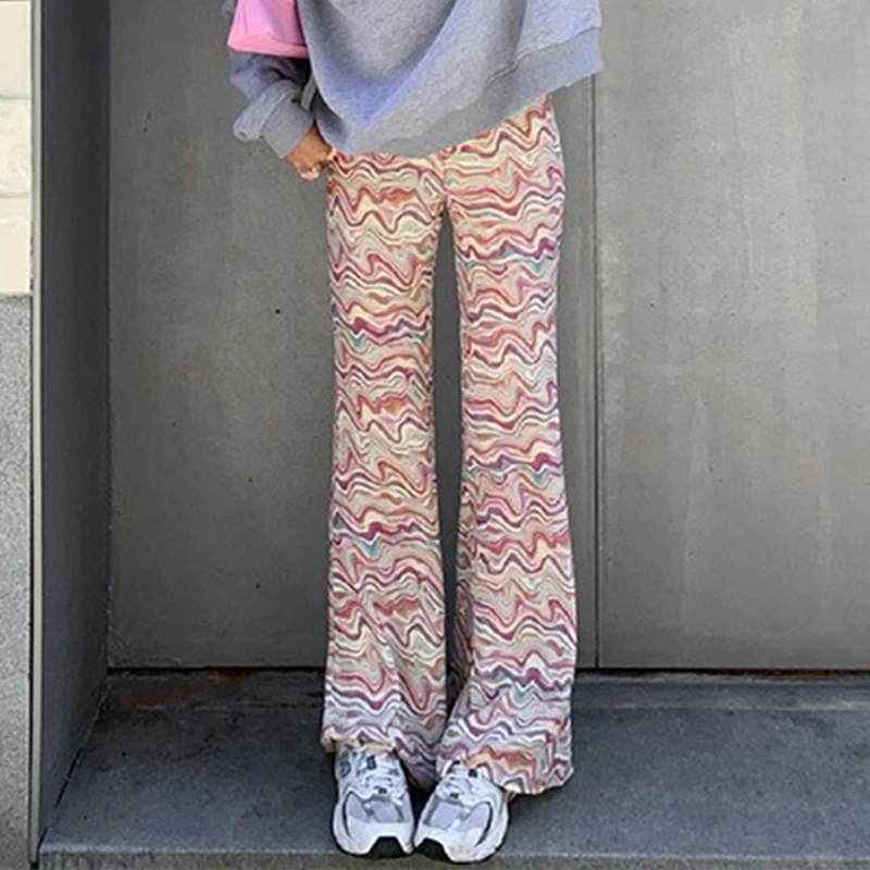 Брюки-клеш Y2KGIRL женские с принтом, повседневные широкие Модные Винтажные штаны с завышенной талией, свободные длинные брюки, винтажная одежда