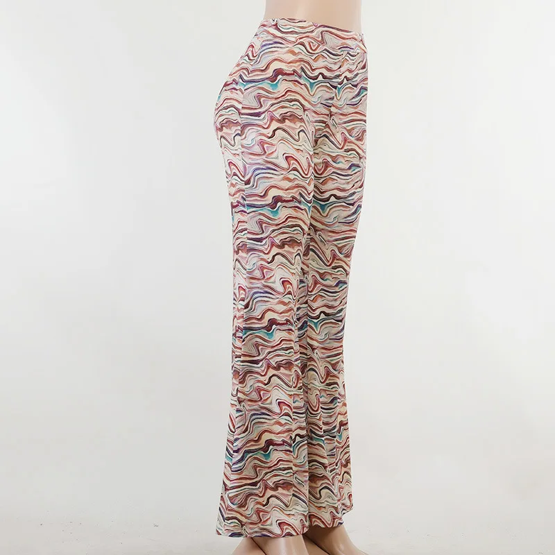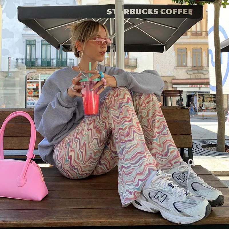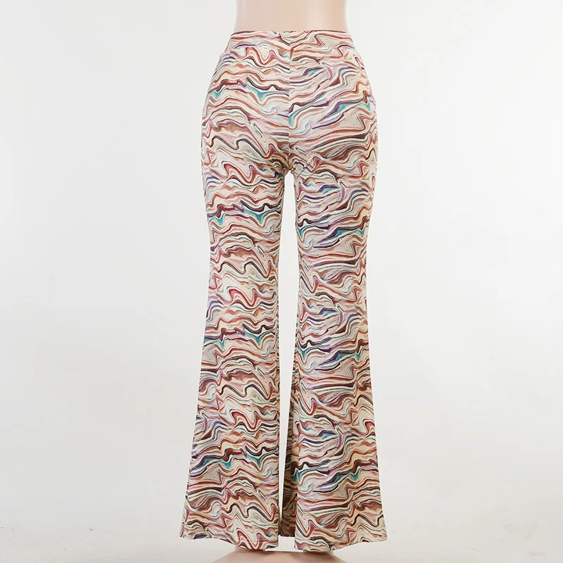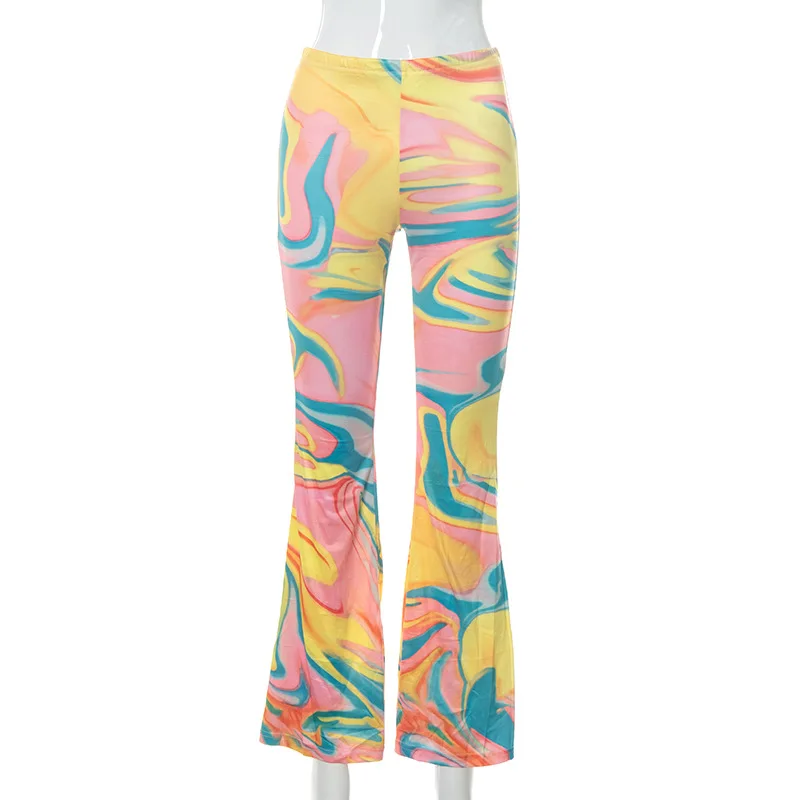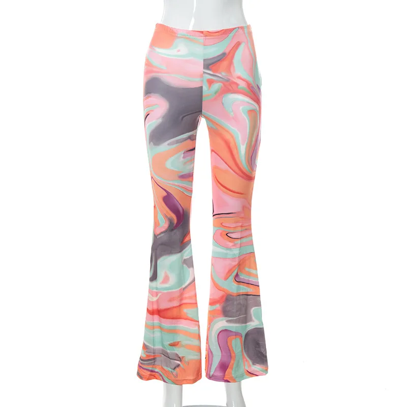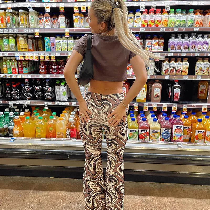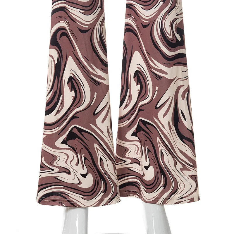 Брюки-клеш Y2KGIRL женские с принтом, повседневные широкие Модные Винтажные штаны с завышенной талией, свободные длинные брюки, винтажная одежда