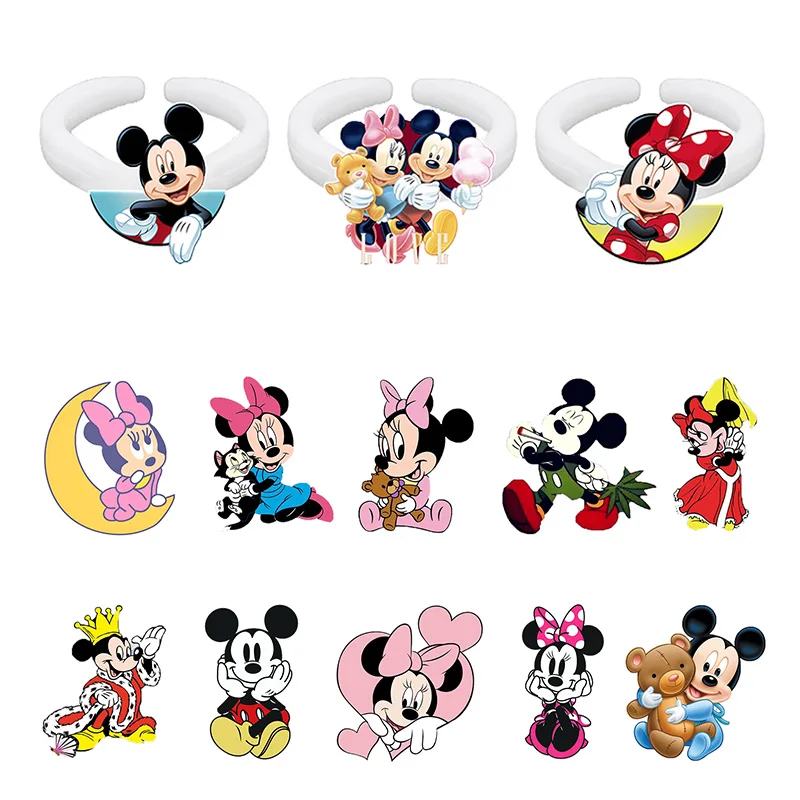 Новинка 2021, набор из акриловых колец Disney с Микки и Минни из смолы, женское ювелирное изделие, подарок на вечеринку, регулируемое кольцо, ювелирные изделия