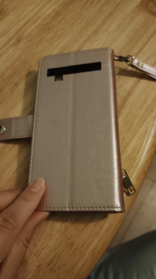 Чехол на ощупь гладкий, но выглядит немного как блестящая искусственная кожа. Это гораздо лучше, чем в большинстве случаев, когда я увидел ленту, используемую для удержания телефона на месте. Это действительно правильно удерживает телефон. Я не чувствую, что цвет такой же. У меня больше цвета шампанского, но все в порядке. Мне тоже нравится Кошелек для монет