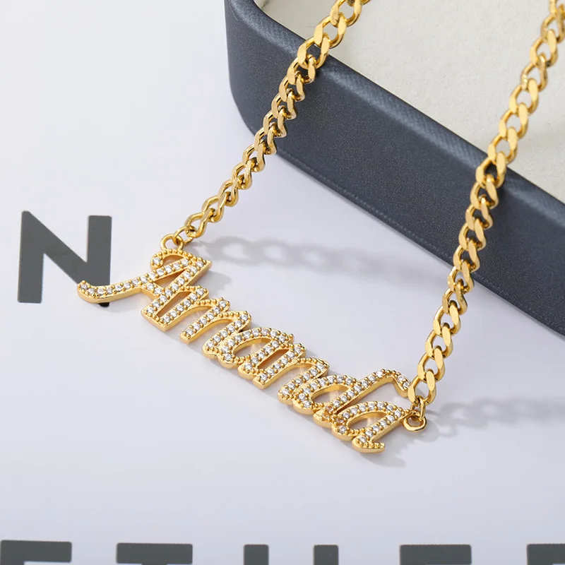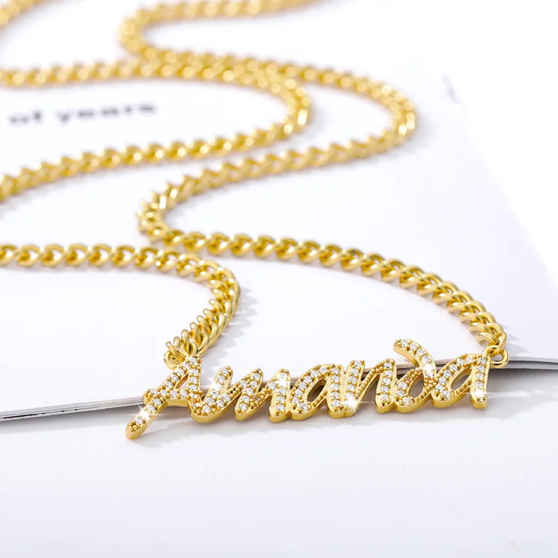 Модная кубинская Цепочка с кристаллами под заказ, ожерелье с кулоном для женщин, персонализированный циркониевый чокер для вечеринки, ювелирные изделия, свадебные подарки для девушек