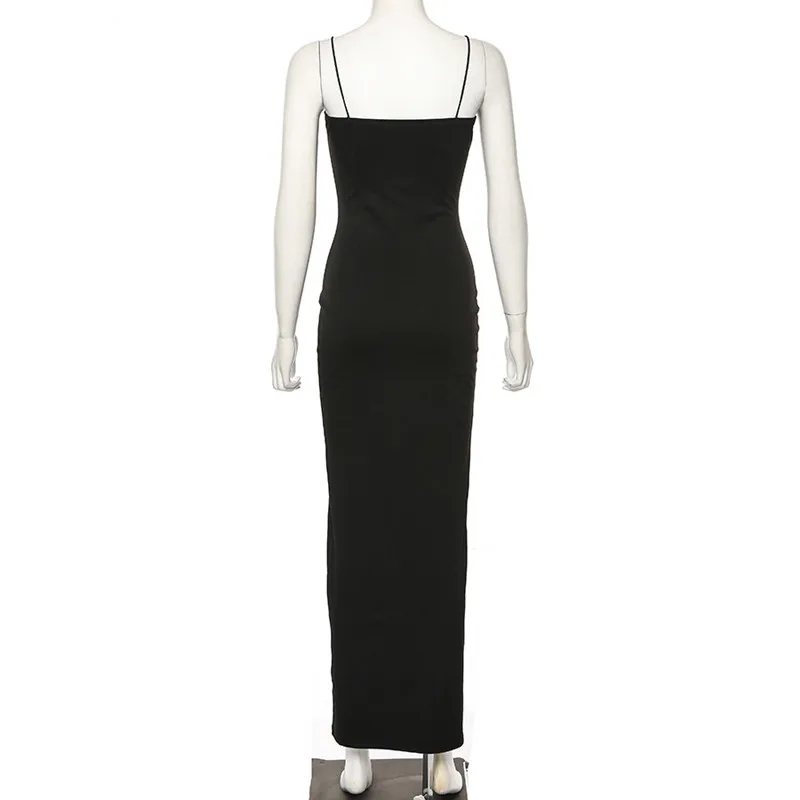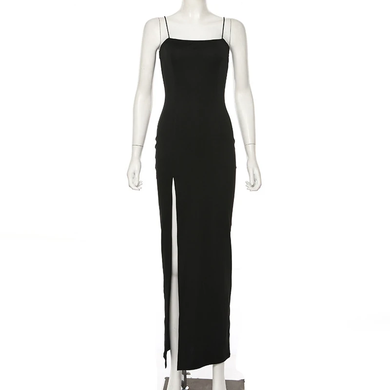 Летнее платье для женщин 2021 модное сексуальное однотонное облегающее длинное платье на бретельках с Боковым Разрезом версия А-силуэта из смесового хлопка со средней талией