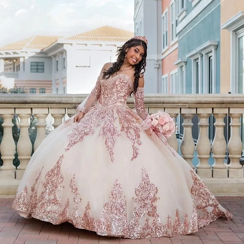 Мексиканское темно-красное платье 15 лет, платье для Quinceanera с выдвижными рукавами, блестками и аппликацией, милое платье 16 лет, длинное платье для выпускного вечера