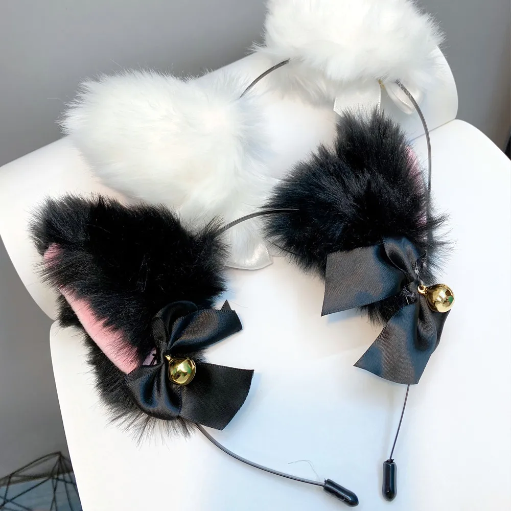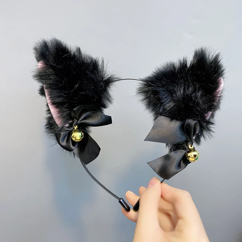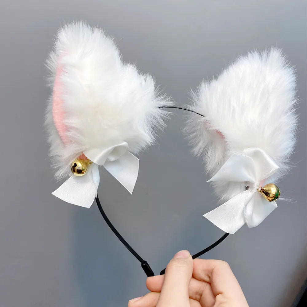 Плюшевые кошачьи уши с колокольчиком для косплея для девочек, ободо...