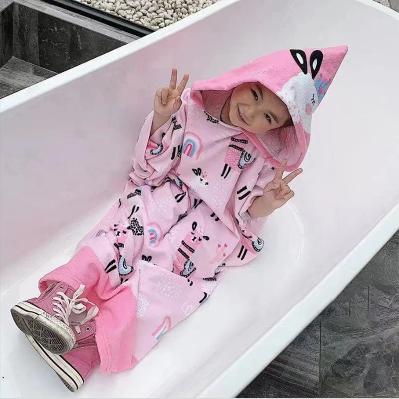 Полотенце-пончо детское, с капюшоном, для девочек и мальчиков