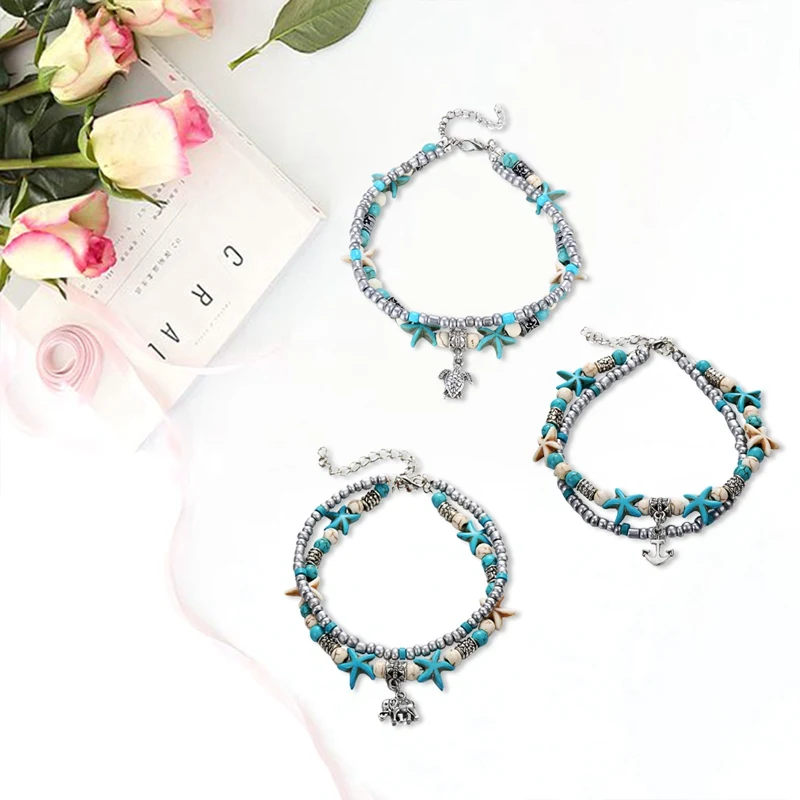 Браслеты на ногу женские, многослойные ножные браслеты с морскими з...