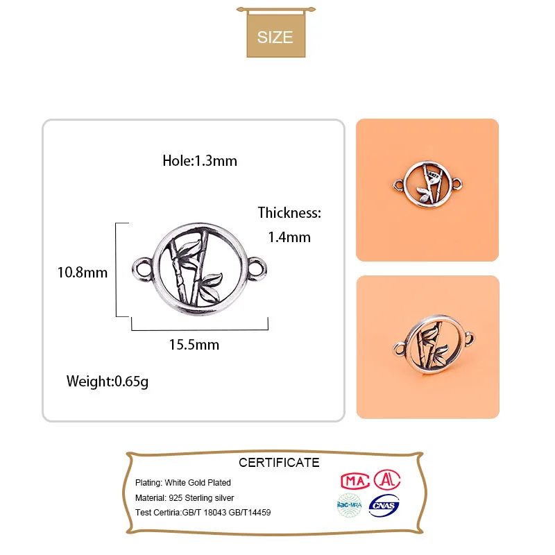TrustDavis Настоящее серебро 925 пробы, модный бамбуковый Шарм-браслет, подвеска ручной работы, DIY аксессуары, ювелирные изделия, оптовая продажа HY063