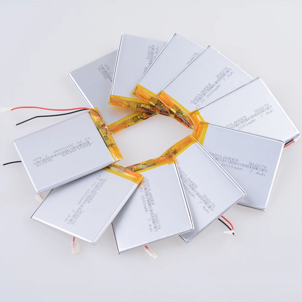 10 шт.лот 306070 3,7 в 2000 мАч перезаряжаемый литий-полимерный аккумулятор для электронной книги, планшетного ПК, внешний аккумулятор Wexler Book E6005 356070