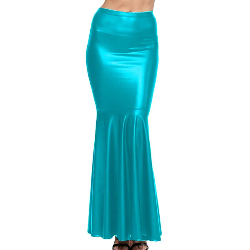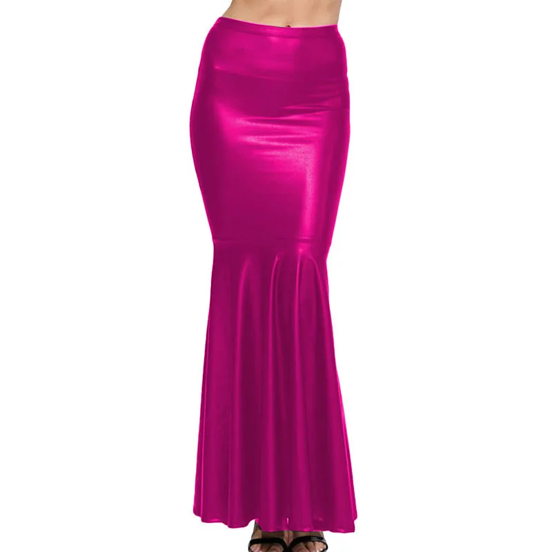 Юбка-Русалка Женская длинная, 17 цветов, с высокой талией, с металлическим блеском, из лакированной кожи, размера плюс