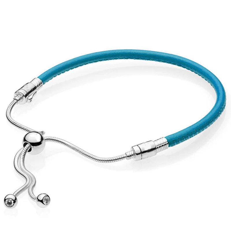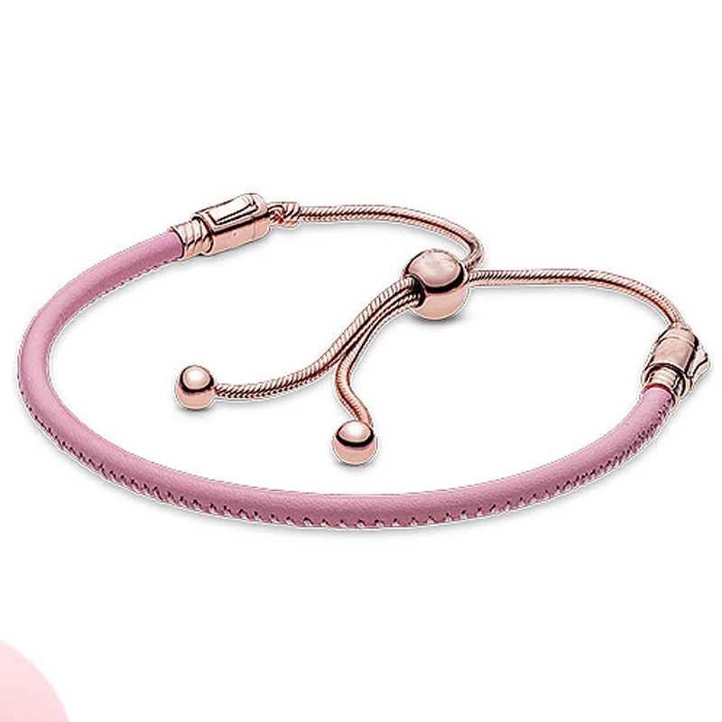 Оригинальный Розовый кожаный браслет S925 с регулируемой скользящей...