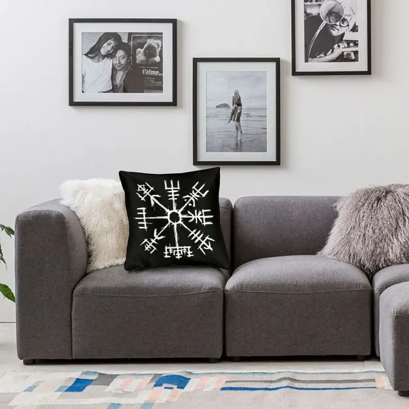 Мягкая диванная подушка-чехол с компасом викингов, вегвизир, домашняя декоративная квадратная наволочка для подушки в стиле Норды Вальгаллы, 45x45 см, наволочка для дивана