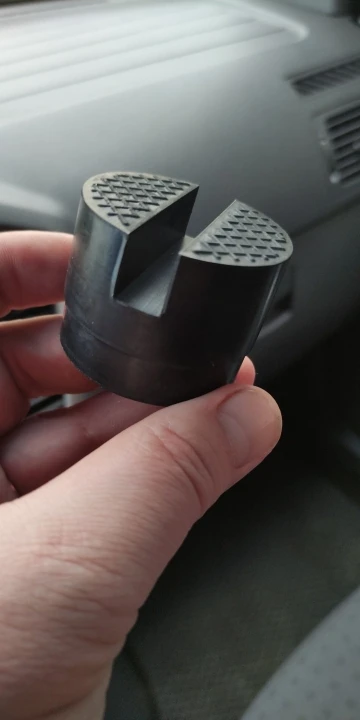 В меру жесткая резина. Помогает не царапать днище машины при использовании домкрата. Почему-то в комплекте с домкратом не идет столь нужная вещь.