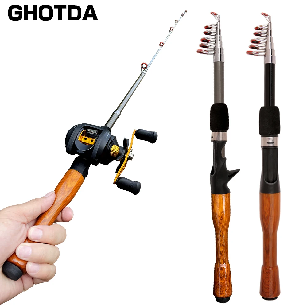 Новинка, катушка для спиннинга GHOTDA, комбинированная портативная мини-удочка 1,31,61,8 м для приманки и комплект катушки для заброса приманки 17 + 1 шарикоподшипник