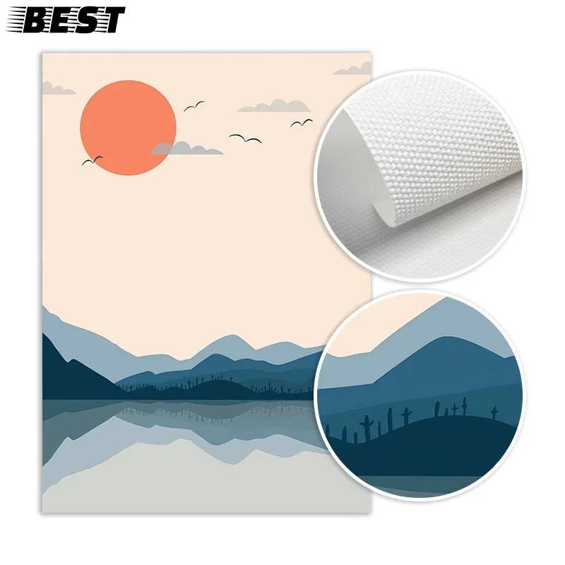 Абстрактная Современная Картина на холсте в японском стиле с закатом, гор, озером, постеры и принты, Настенная картина для домашнего декора