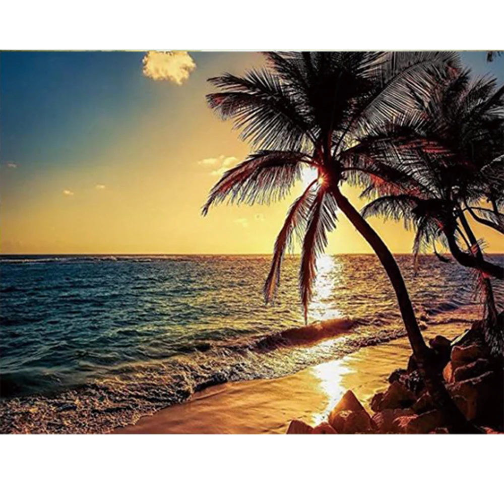 Пейзаж 5D, алмазная живопись, морской пляж, алмазная вышивка, пальм...