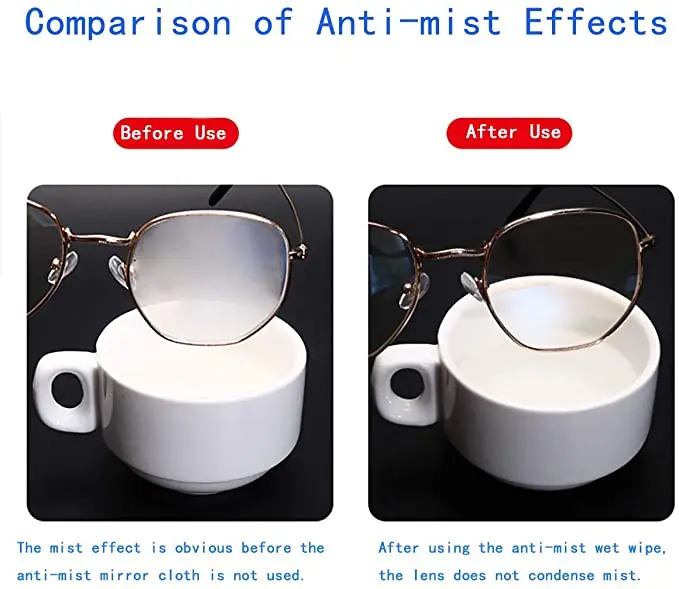 Использование ткани для очков со специальными противотуманными молекулами может эффективно предотвратить скапливание воды на поверхности очков. Даже в туманные дни наша Чистящая салфетка всегда сможет обеспечить четкое видение и попрощаться с размытым миром