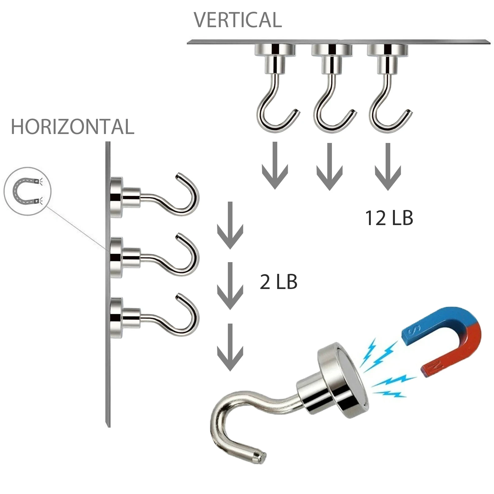Магнитный крюк используется для внутреннего, наружного использования, кухни (сбоку холодильника, места для хранения специй), ванной комнаты, шкафа, гаража, сарая, или любое место в офисе для организации и хранения.