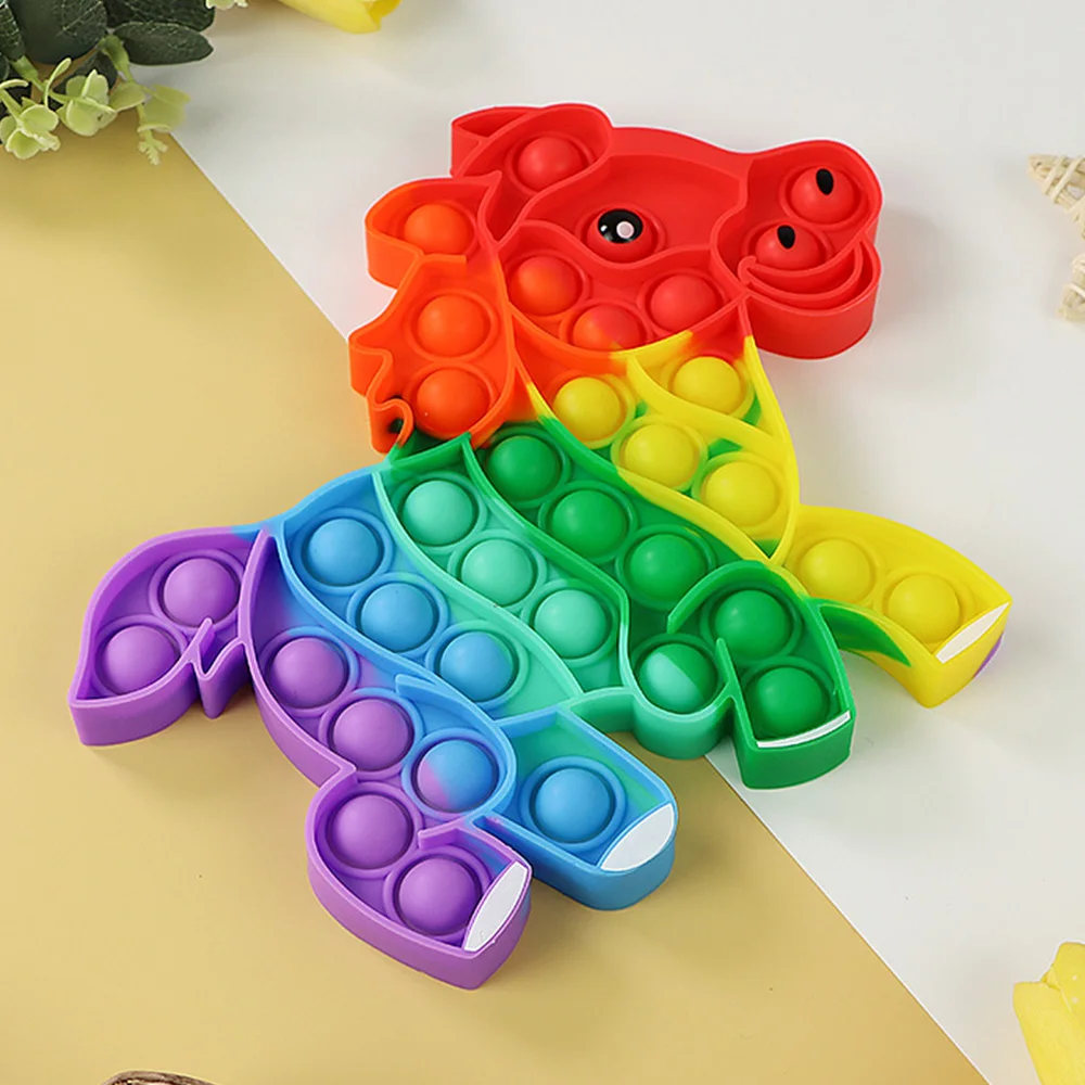 Характеристики продукта:Продукт изготовлен из высококачественного пищевого силикона и получил соответствующие сертификаты проверки качества. Нетоксичный и безвкусный, и может быть очищен кипятком. Различные яркие цвета легко получить любимый для детей.При нажатии на пузырь будет слабый звук. После окончания игры вы можете перевернуть игрушку, чтобы начать следующий раунд игры.Его можно использовать для детей в возрасте до 3 лет, чтобы использовать способность ребенка захватывать предметы. Когда дети играют, они могут осуществлять свое логическое мышление и навыки расчета.