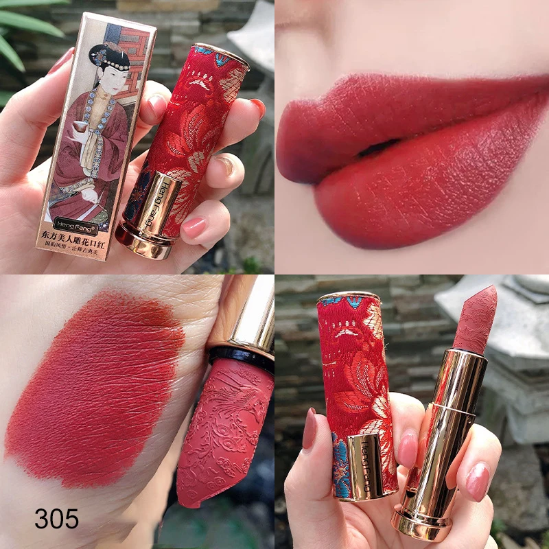 Hengfang 6 цветов резная губная помада в ретро стиле бархатная мато...