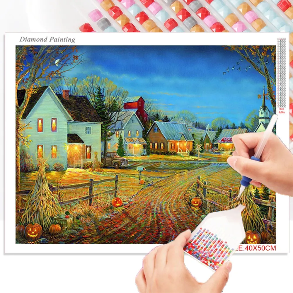 Алмазная живопись 5D "сделай сам", дом Бриллиантовая вышивка дереве...