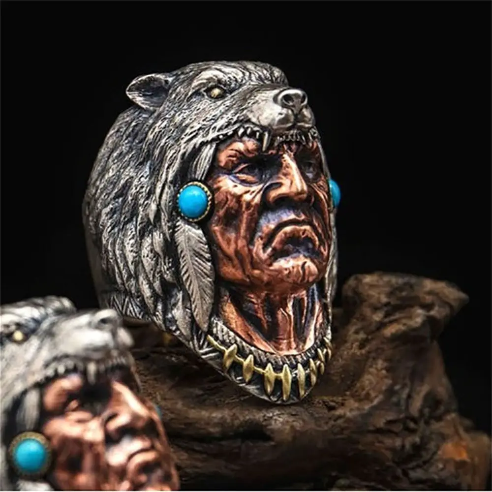 2021 Мода 316L нержавеющая сталь индийский оборотень Воин кольцо Винтаж Племенной вождь ювелирные изделия Аксессуары для хип-хоп мужчин женщин