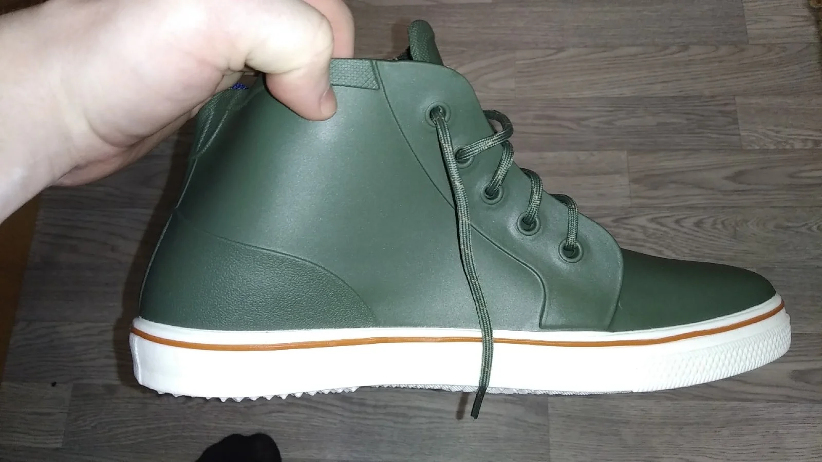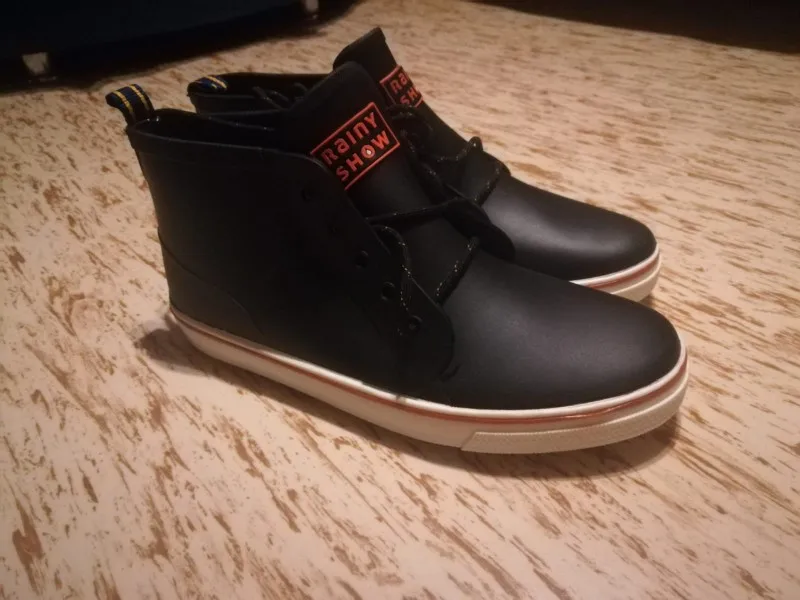 Ботинки шикарные, по виду даже не скажешь, что они полностью из резины, кроме шнурков конечно и внутренней отделки, в целом я в восторге лёгкие, мягкие и удобные, посмотрим в сырую погоду как будут носиться, спасибо!)