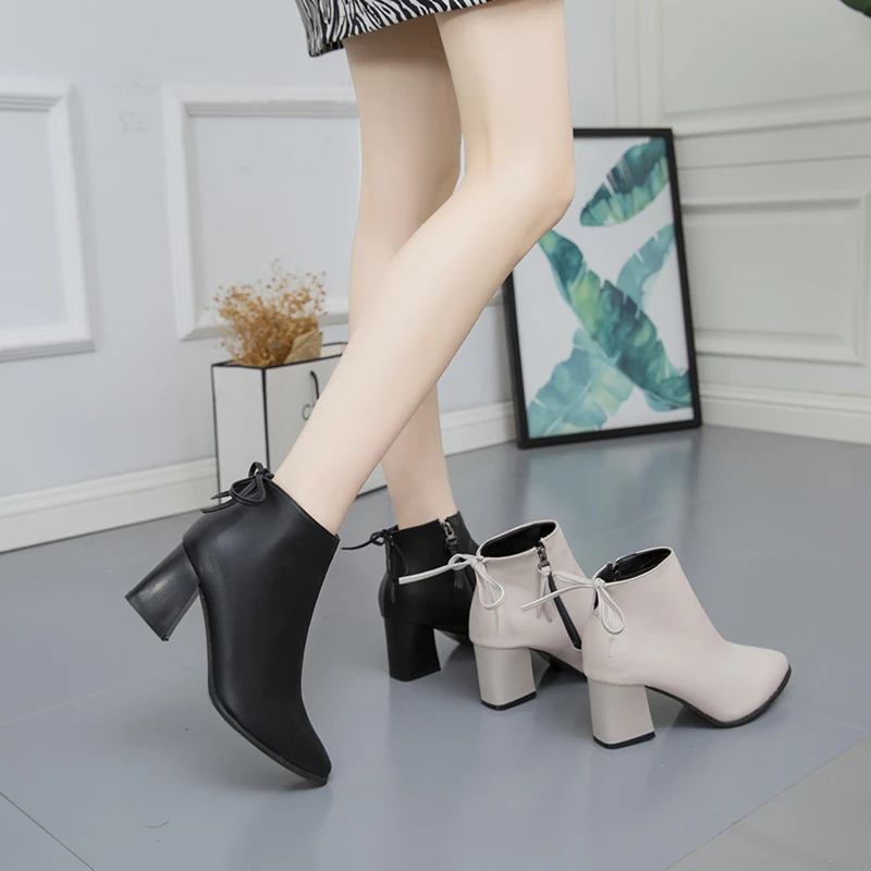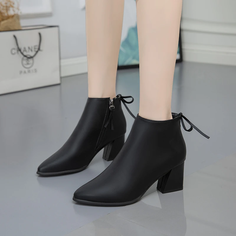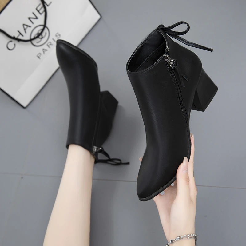 Женские ботинки с острым носком, на высоком каблуке, с меховой подкладкой