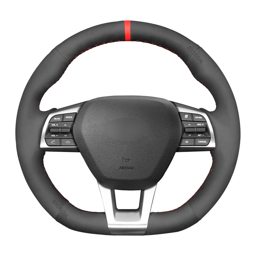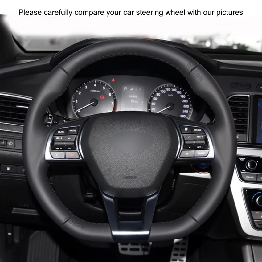 Оплетка рулевого колеса из черной замши ручной работы, косички для Hyundai Sonata 9 2015 2016 2017 2018-2019 3 Спицы D-образная