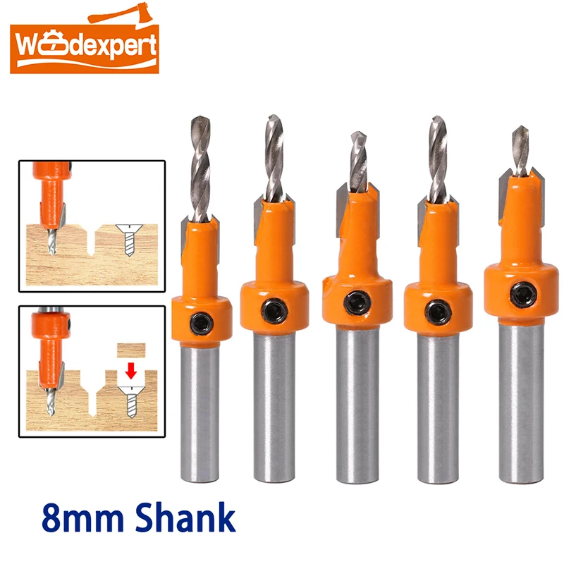 5pcs 8mm Shank Hss Woodworking Countersink Router Bit Set Screw Ext...