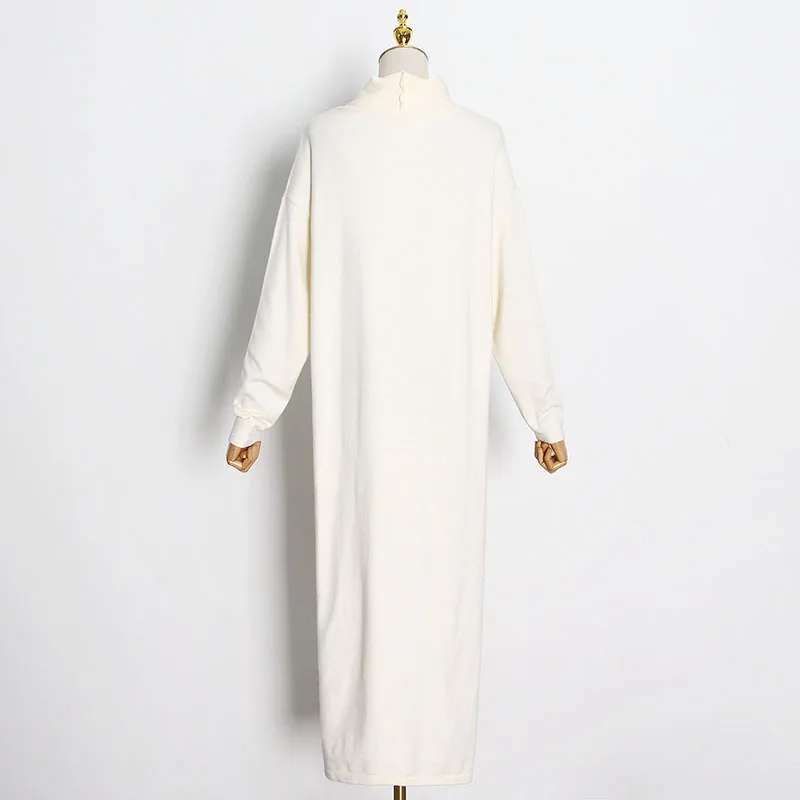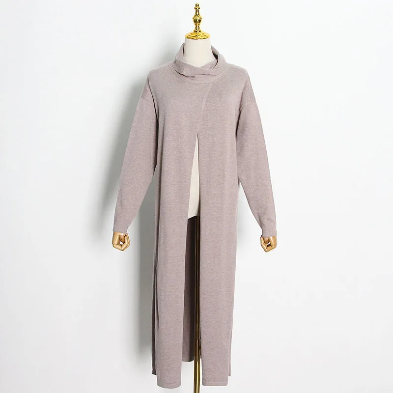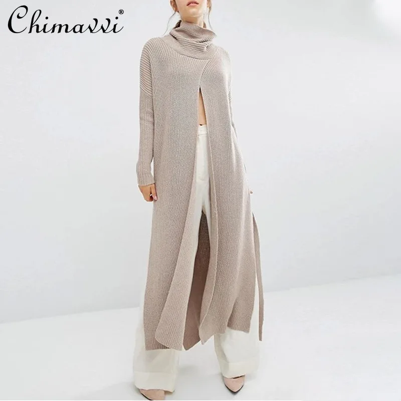 Женская водолазка с длинным рукавом, однотонный вязаный пуловер с разрезом спереди, облегающий длинный свитер, Простые Топы, осень 2021