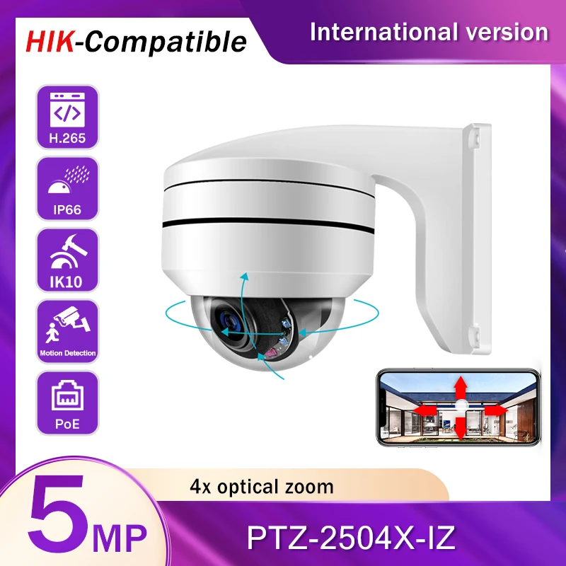 PTZ HD IP-камера видеонаблюдения с панорамированием и наклоном, 5 МП, 4-кратное увеличение, мощность 2,8-12 мм, 50 м, ИК, надежный, в горячую погоду, Humidiy H265, совместимая с Hikvisi