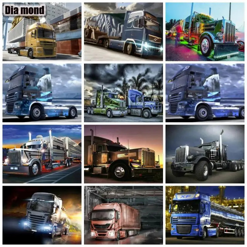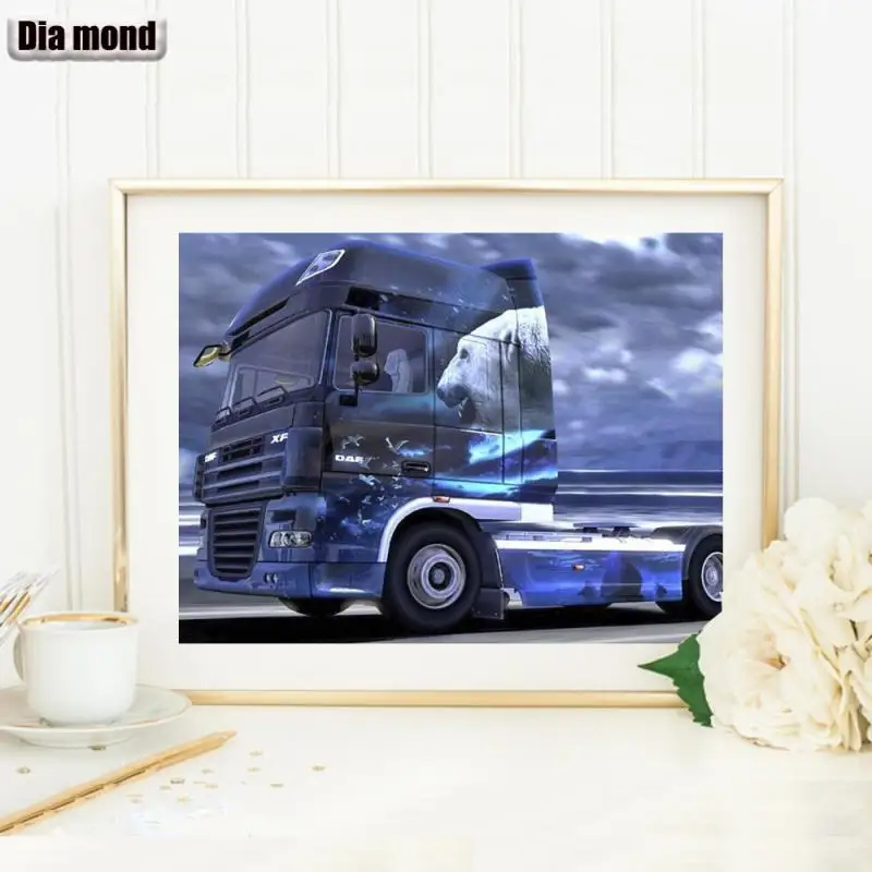 Полноразмернаякруглая алмазная живопись, грузовик, алмазная вышивка, мозаика, грузовик, автомобиль, вышивка крестиком, декоративная мозаика из стразов на подарок