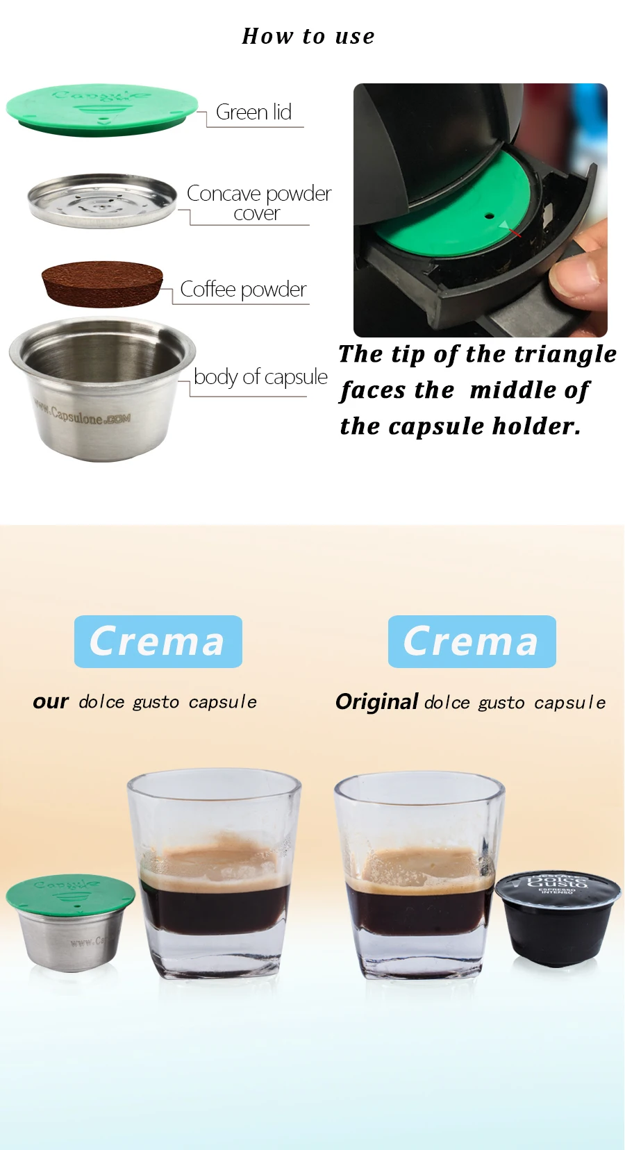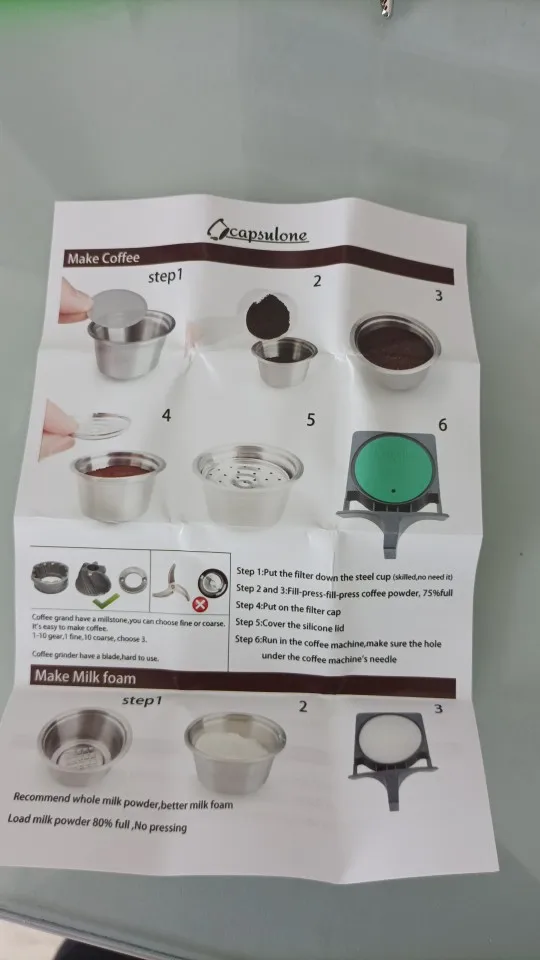1. Заполнение-пресс-кофе порошок, 70% полный2. Наденьте крышку фильтра3. Крышка силикагеля4. Запуск в кофемашине, убедитесь, что отверстие под иглой кофемашины